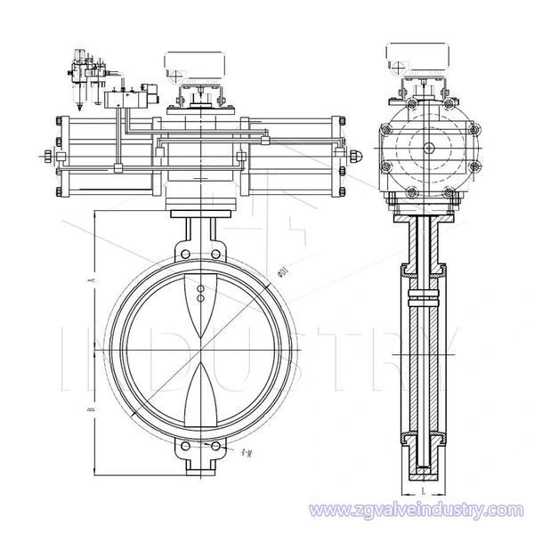 صفحه پروانه ای شیر پروانه ای ویفر در جهت قطر خط لوله نصب می شود.