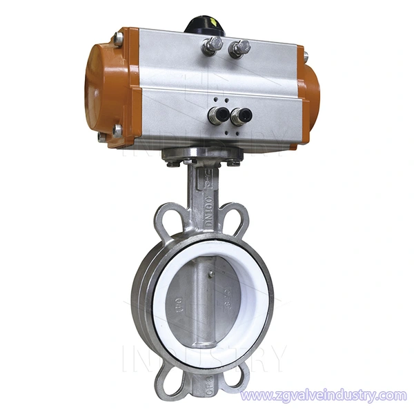 ウェーハバタフライバルブのバタフライプレートは、パイプラインの直径方向に取り付けられています。