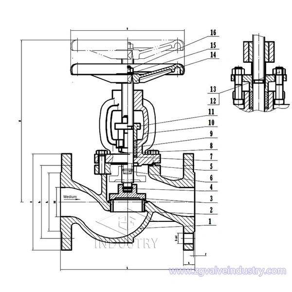 De Globe Valve van verschillende materialen kan worden gebruikt voor water, stoom, olie, salpeterzuur, azijnzuur, oxidatiemiddel, ureum en andere media.