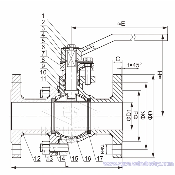 Kuleventil for bruk i petrokjemisk industri, kjemi, fibertekstiler, plast, papirproduksjon, kraftindustri, stål, gummi og gasssystemer.