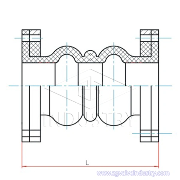 2. Po zainstalowaniu może pochłaniać przemieszczenia poziome, osiowe i kątowe spowodowane drganiami rurociągu; nie jest ograniczony niewspółśrodkowością rurociągu i nierównoległym kołnierzem.